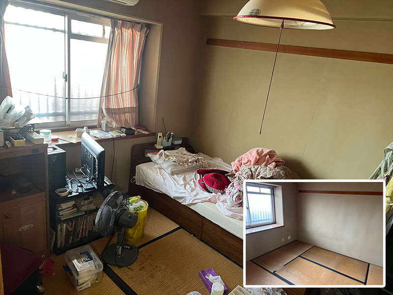 長年ご家族がお一人でお住まいになられていたお部屋を遺品整理して明け渡されるためご依頼いただきました。